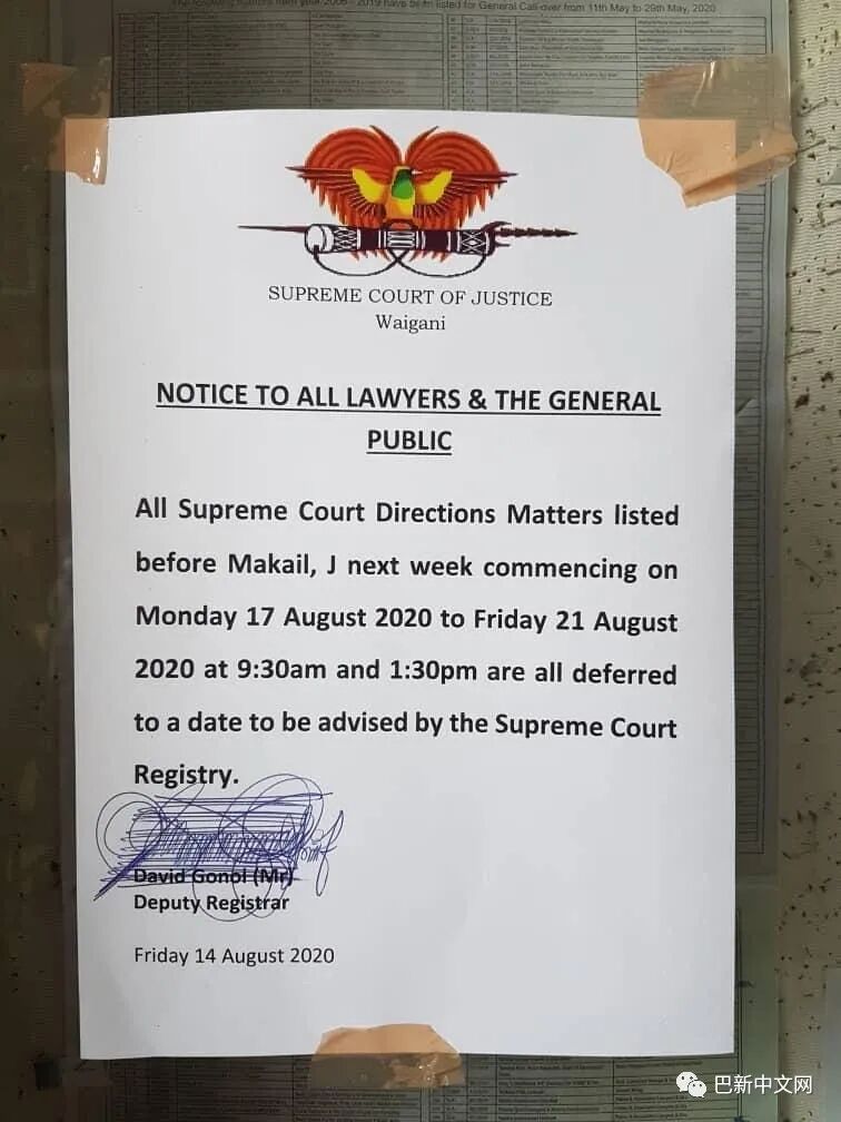 巴新反對(duì)黨領(lǐng)袖貝爾登·納馬對(duì)詹姆斯·馬拉普當(dāng)選總理和《2020年國(guó)家大流行病法案》是否符合憲法提出的法庭訴訟已被推遲。